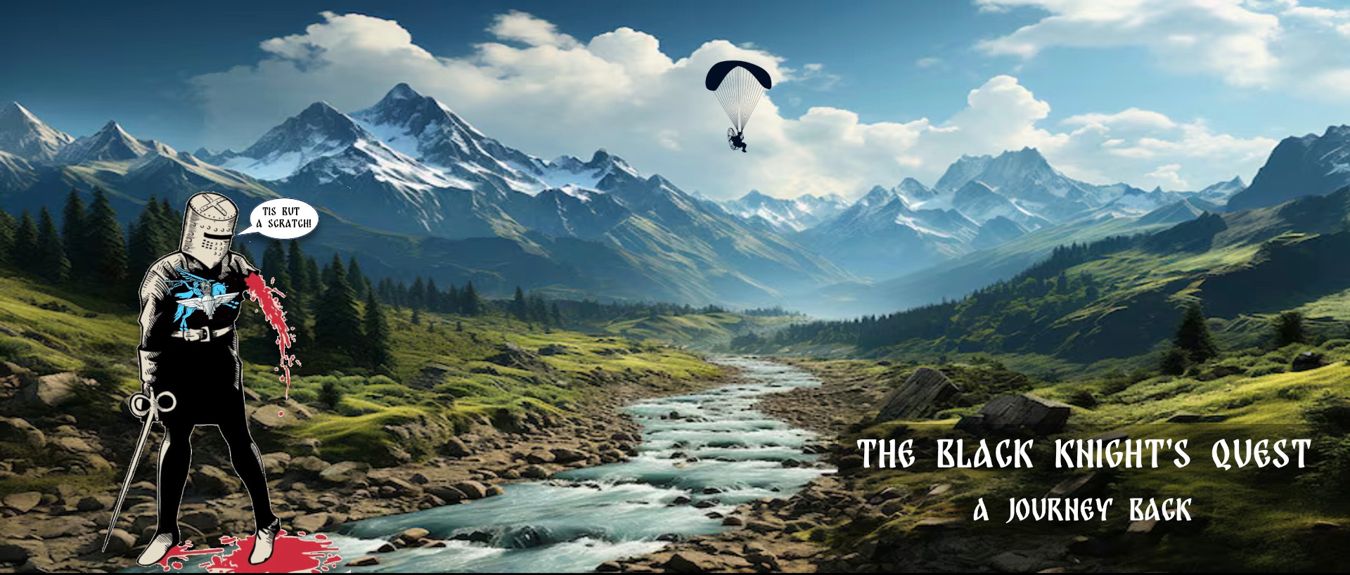 Strangely the Black Knight scene from Monty Python’s Quest for the Holy Grail, in which King Arthur chops off the Black Knight’s left arm and declares victory, played through my mind. Tis but a scratch! declares the Black Knight and carries on fighting. There is something so Parachute Regiment about the Black Knight’s defiance that I felt I’d been cast in that role, by whatever divine forces had seen fit to spare my life give me a second chance. I am now the Black Knight on a quest.